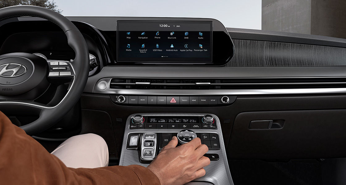 The cabin ambiance is luxurious with light, sporty touches that hint at PALISADE’s exciting driving dynamics. The contoured seats offer excellent support for thigh and back muscles and will have you looking forward to long, relaxing drives. Thoughtfully laid out instrument controls promote safety by keeping hand-eye movements to a minimum.