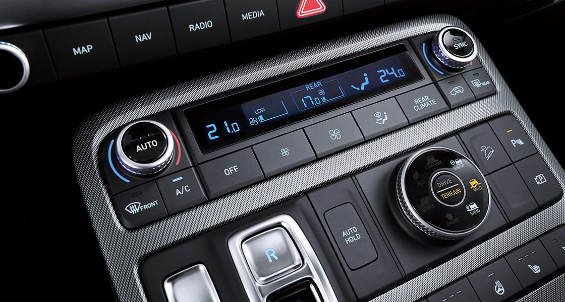 The cabin ambiance is luxurious with light, sporty touches that hint at PALISADE’s exciting driving dynamics. The contoured seats offer excellent support for thigh and back muscles and will have you looking forward to long, relaxing drives. Thoughtfully laid out instrument controls promote safety by keeping hand-eye movements to a minimum.